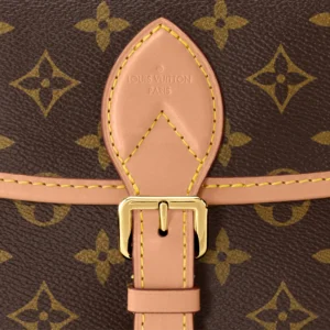 This Diane handbag reimagines the classic design from the 1990s. It incorporates retro elements like leather corner trims and traditional buckles into the Monogram canvas body, while its modern functionality is enhanced by streamlined pockets and a well-organized interior. The wide jacquard shoulder strap features the striking Louis Vuitton logo on one side and the iconic Monogram floral pattern on the other.