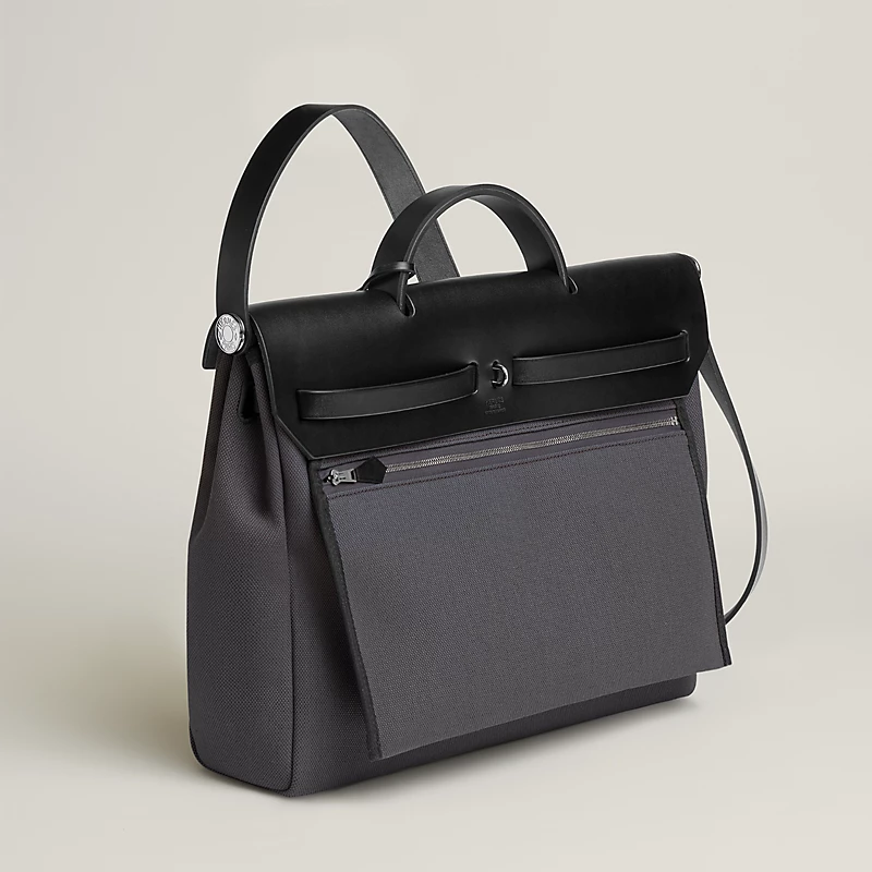 The dimensions of the Hermès Herbag Messenger 39 are 39 cm (length) × 28 cm (depth) × 9 cm (width), with a shoulder strap length of 100 cm.