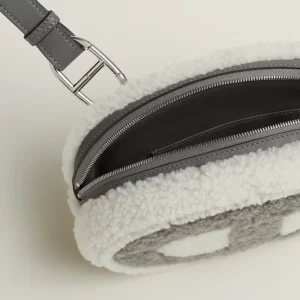Swift calfskin two-tone waist bag with an adjustable shoulder strap and interior pocket.