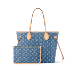 This Neverfull Medium Tote Bag features Monogram denim with cowhide leather trims. The adjustable side straps allow flexible shaping of its silhouette, making it a timeless choice for urban outings. Its spacious interior can easily accommodate a 13-inch laptop, while multiple pockets including a detachable zipped pouch enhance functional practicality.
