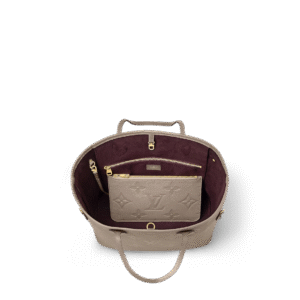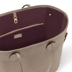 This Neverfull Medium Tote Bag is crafted from Monogram Empreinte soft embossed leather. By cinching the side straps, its spacious capacity can be transformed into a compact urban handbag; the long handles allow for effortless switching between shoulder carrying and elbow 挎 ing.