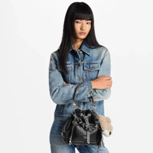 Part of the LV Vibe collection, the No Way bag crafted from sheepskin leather is accented with lustrous metal hardware. It reinvents classic Noé bag elements with a modern rock edge, while the LV Circle slider enables easy opening adjustment. The front zip pocket offers handy storage for keys and cosmetics.