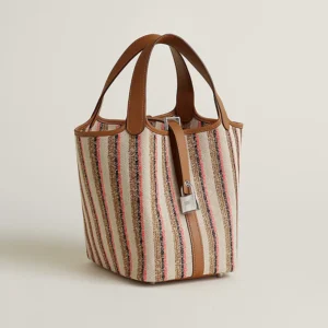 Clemence taurine leather tote bag with “Couverture Lignes” embroidery.