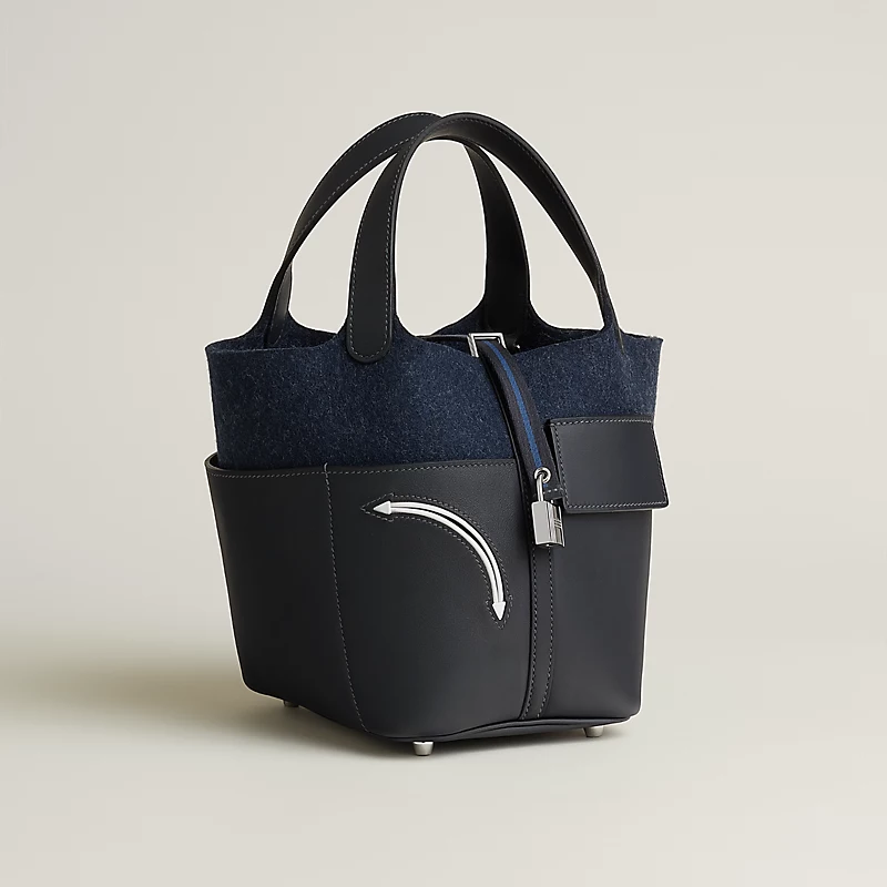 Felt and Swift calfskin handbag with Kelly clasp.