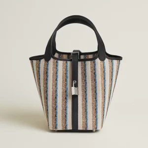 – Leather laces with padlock – Handle-carry handle Made in France Metallurgy: Palladium-plated Dimensions: L 18 x D 19 x W 13 cm